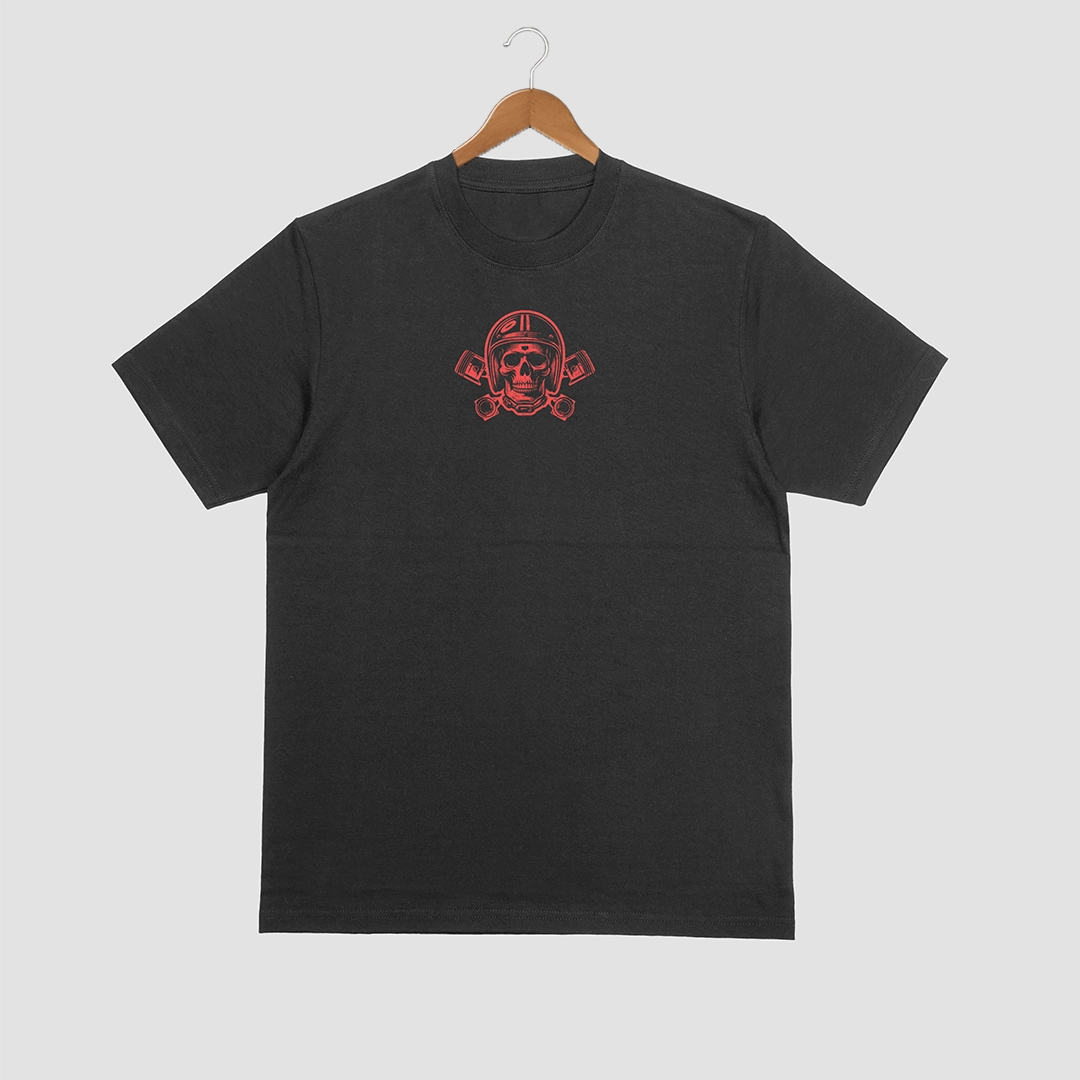 تيشيرت أسود بطبعة رايدر عظمي على دراجة نارية وعبارة “Ride or Die – Riders Club”، تصميم كلاسيكي بروح التمرد والعزيمة.
