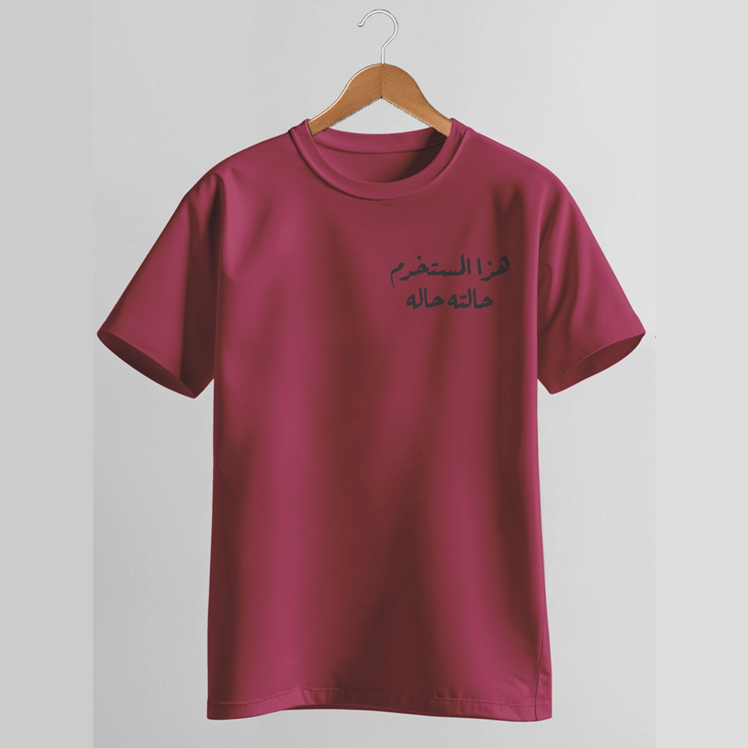 التصميم: طباعة أمامية وخلفية برسومات ونصوص ساخرة
