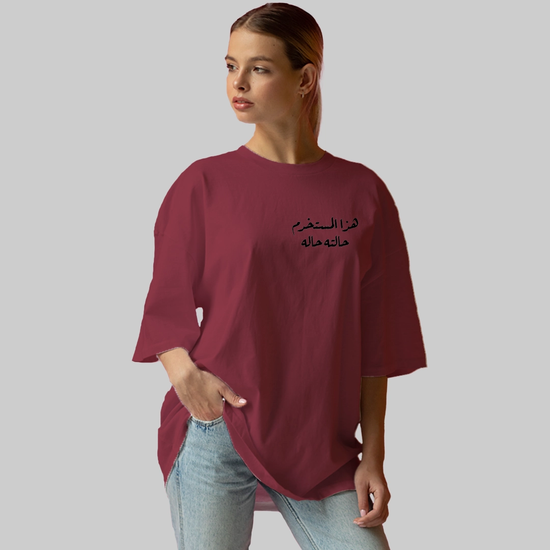 كنزة كاجوال مميزة بلون خمري جذاب وتصميم فكاهي يجمع بين العفوية والذكاء. مطبوع على الجهة الأمامية عبارة “هذا السخدم حالته حاله”، وعلى الجهة الخلفية عبارة “I NEED فلوس” مع رسمة كيس نقود تضيف لمسة مرحة وجريئة.