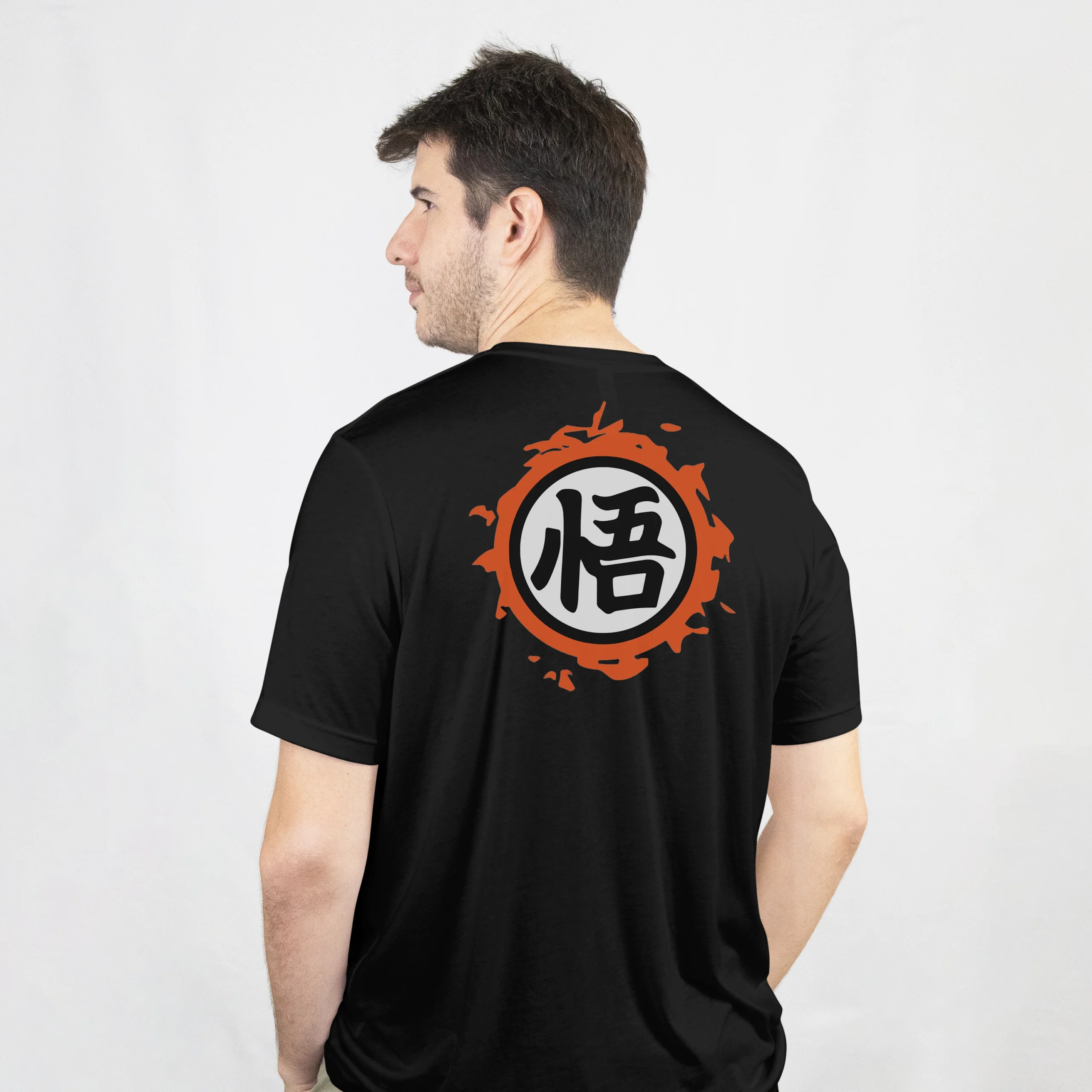 ✅ تصميم خلفي لرمز “غوكو” الأيقوني داخل دائرة طاقة نار برتقالية