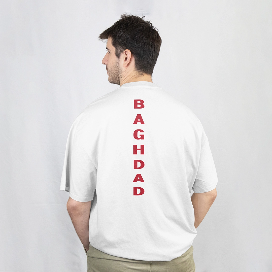تيشيرت بتصميم مستوحى من هوية بغداد، مدينة السلام والعراقة.