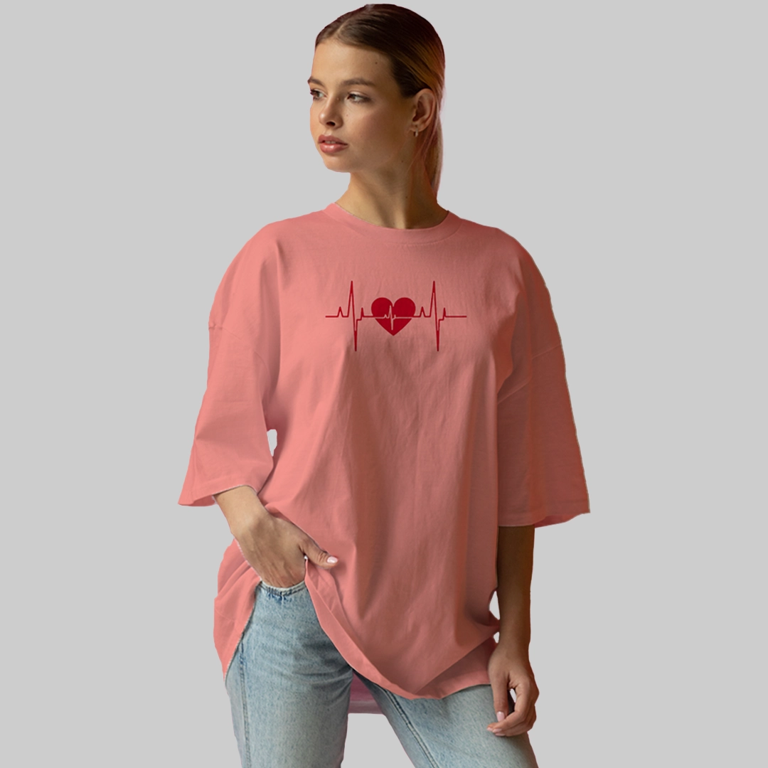 تيشيرت نبض القلب – وردي ناعم، قطن طبيعي
